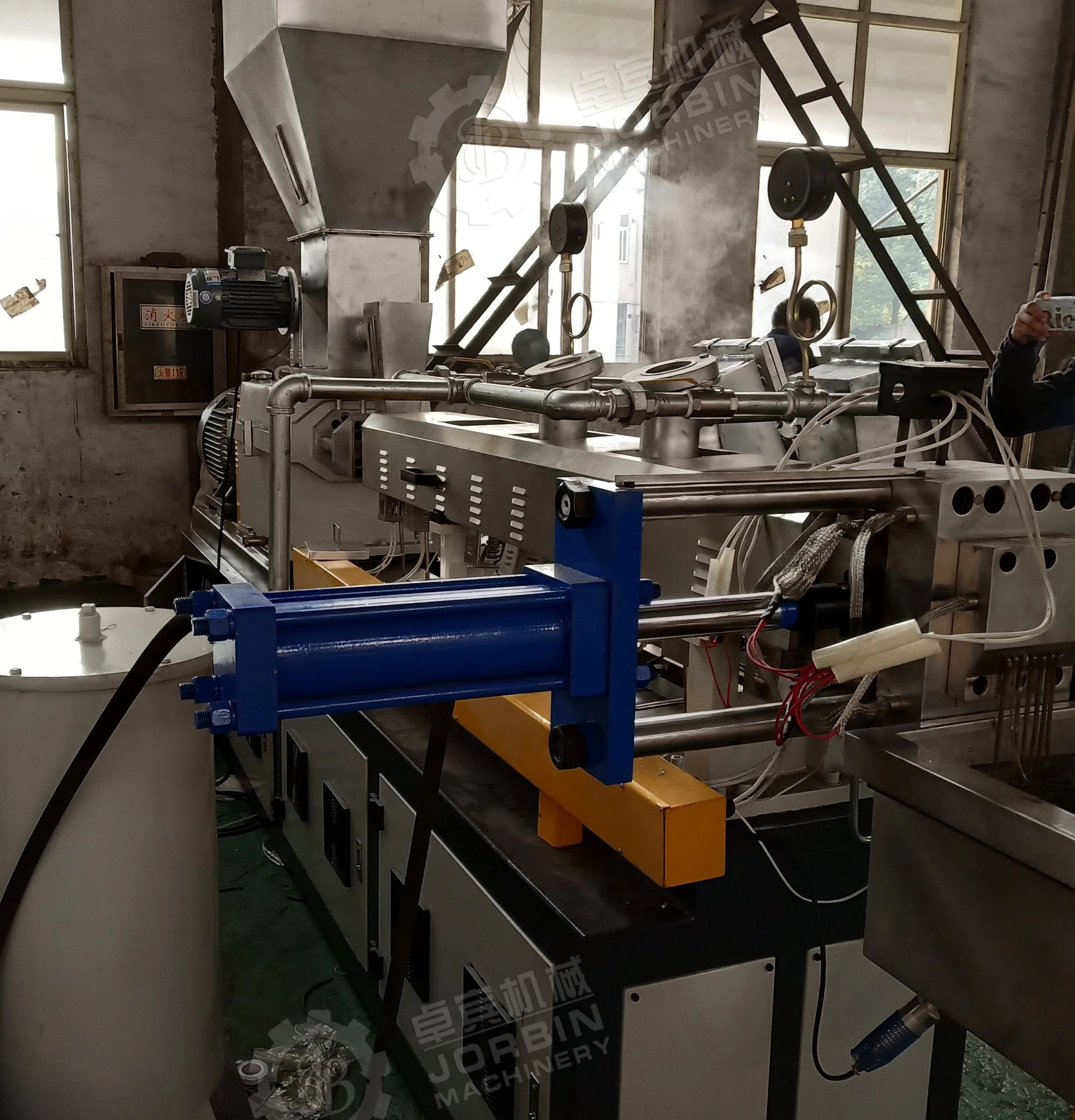 The material come out from the die(pull trap like noodles pelletizing way, PET must use this pelletizing way. And the its need good vacuum, like roots pump, then the pellets will be much better)